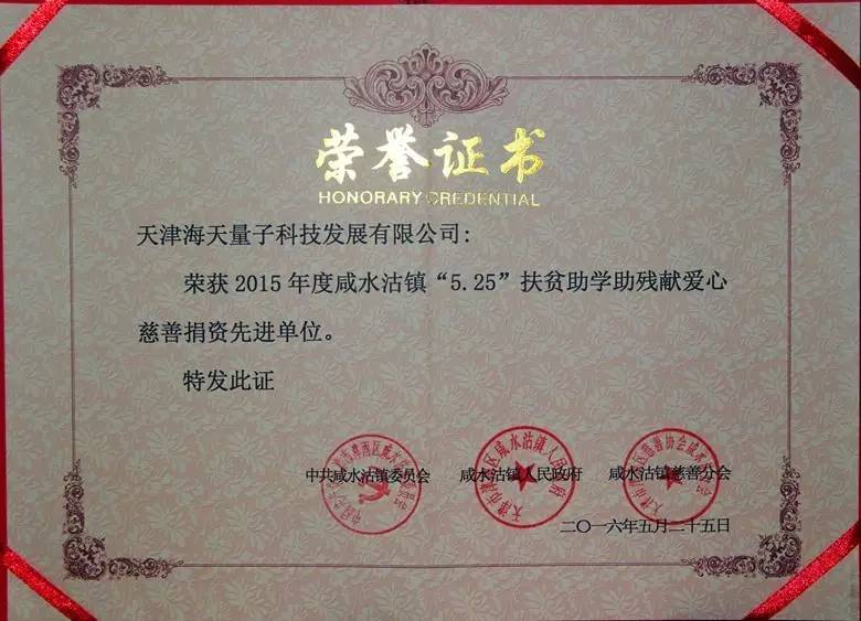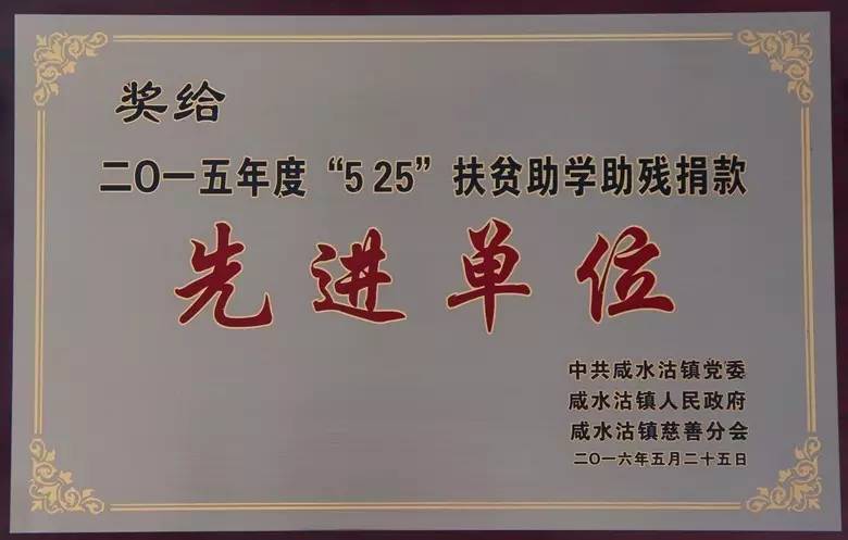kaiyun开云电竞物联获2015年度“5·25”扶贫助学助残捐款先进单位称号