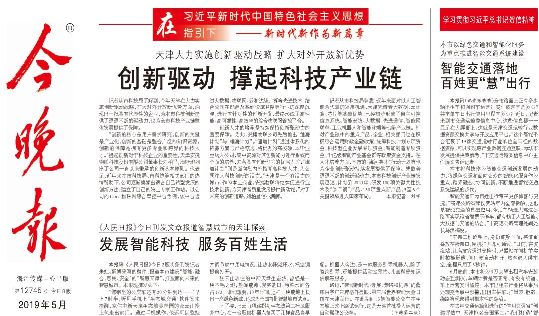 近日,天津kaiyun开云电竞物联科技股份有限公司登上《今晚报》头版头条,以下为相关内容:
