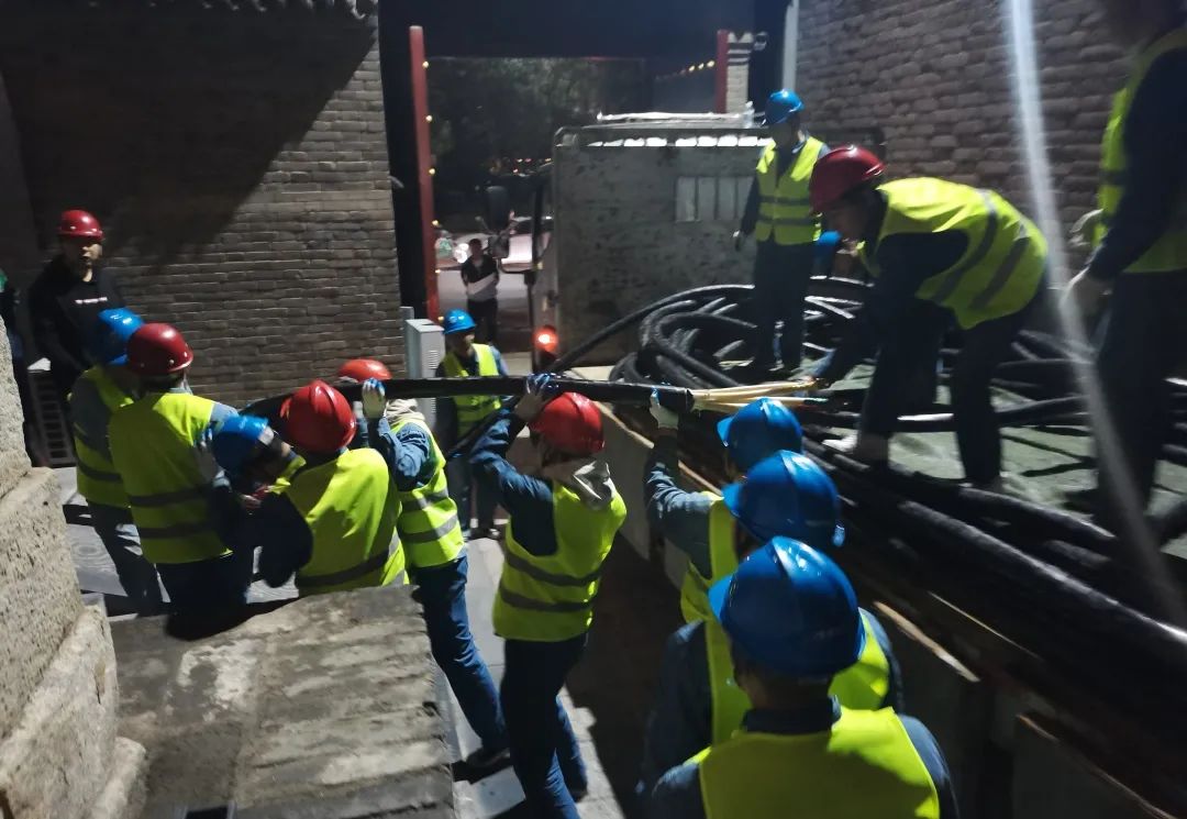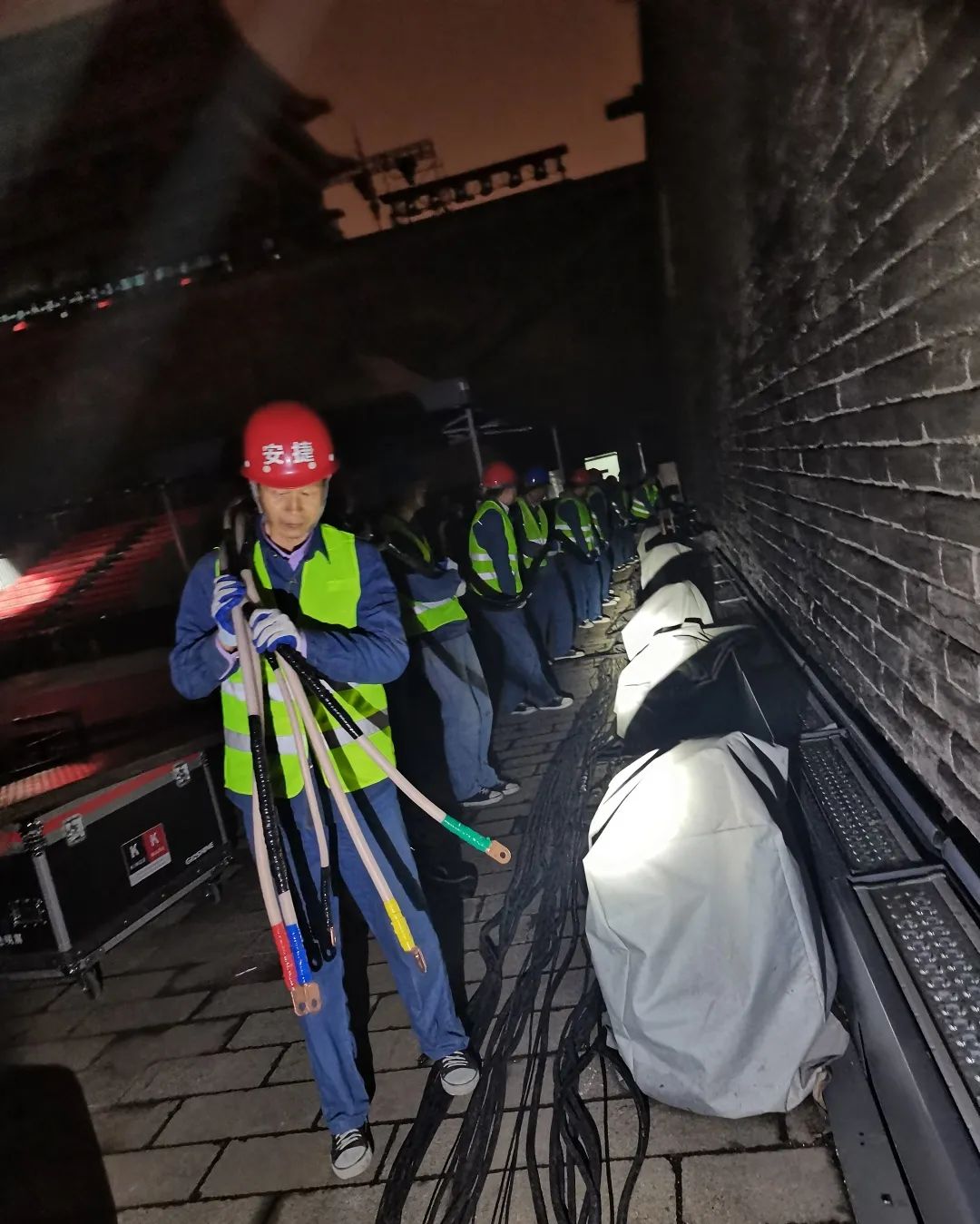 接到本次保电任务,kaiyun开云电竞物联提前周密部署,统筹安排人员,制定完善的保电方案,40余位工作人员连夜铺设电缆,奋战3天,现场调试设备,轮班值守。现场由24人组成的kaiyun开云电竞物联保电人员分为四小队及后勤保障组,细化分工,各小组人员全程坚守岗位,加强关键环节和点位的监控,随时应对活动现场供电突发情况,确保了此次丝绸之路国际电影节的顺利开幕。