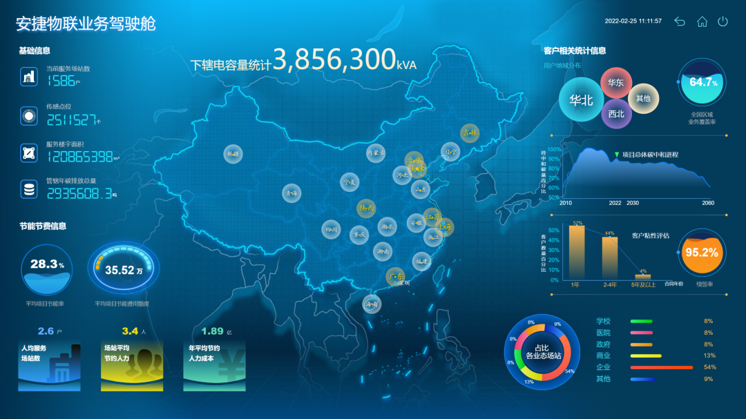 依托本成果,kaiyun开云电竞物联成为国内首家通过BSI(英国标准协会)认证(基于PAS 2060:2014标准实现碳中和)的综合能源解决方案提供商,截至2021年10月,本成果已服务包括国家会展中心(天津)、西安曲江开发区、北京亦庄科技新城、北京大学等全国一千余家用户,覆盖大型公共建筑、商业地产、酒店、轨道交通等领域。应用楼宇面积超1亿平米,可学习、可分析、可预测、可决策,能够帮助用户将楼宇保持在最健康的状态,同时使楼宇内的用户体验达到最佳,可节约运行成本50%以上,节省系统维护费用20%以上,降低能耗15%以上,降低碳排放超百万吨。