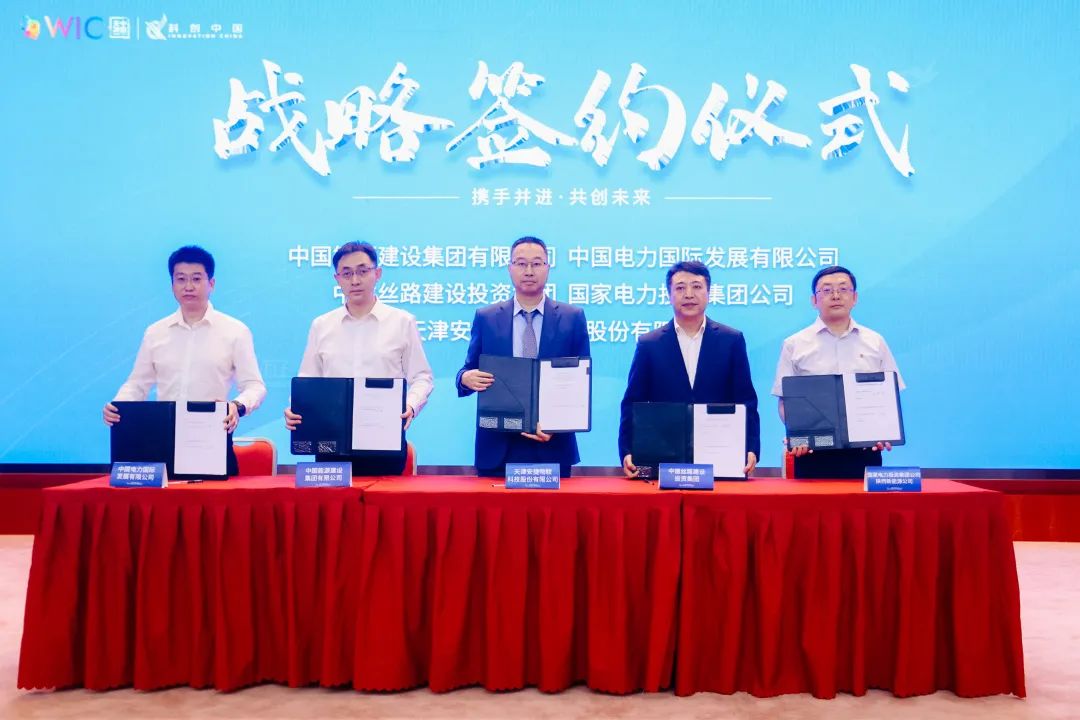 会上,kaiyun开云电竞物联执行董事庞文魁与中国电力国际发展有限公司、中建丝路建设投资集团、中国能源建设集团北方建设投资有限公司、国家电力投资集团陕西新能源公司代表共同签署了促进“双碳”产业发展的战略合作协议,将携手探索低碳经济发展的新路径,为绿色发展、人与自然和谐共生做出贡献。